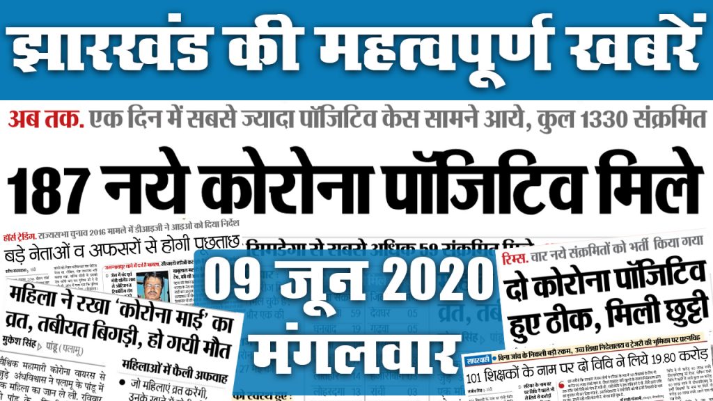 Jharkhand Top 20 News, 09 June: सोमवार को मिले 187 नये Corona पॉजिटिव, पलामू में महिला ने रखा “कोरोना माई” का व्रत, हुई मौत
