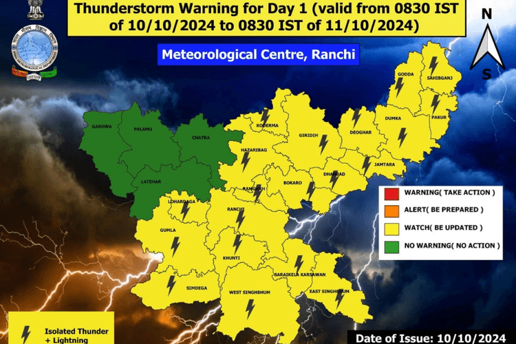 Jharkhand Weather Alert : दुर्गा पूजा पंडालों में रौनक बढ़ गई है. लोग भारी संख्या में अपने परिवार के साथ मां दुर्गा के दर्शन के लिए जा रहे हैं. अगर आप भी घर से बाहर घूमने का प्लान बना रहे हैं तो इससे पहले मौसम विभाग की चेतावनी देख लें. मौसम विभाग ने कहा है कि पूर्वानुमान जारी करते हुए कहा है कि राज्य के कई हिस्सों में गरज के साथ भारी बारिश हो सकती है.