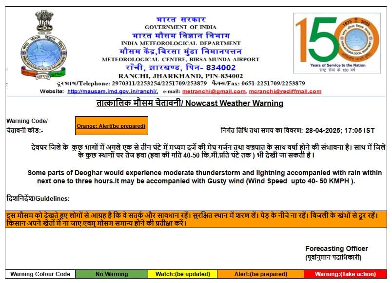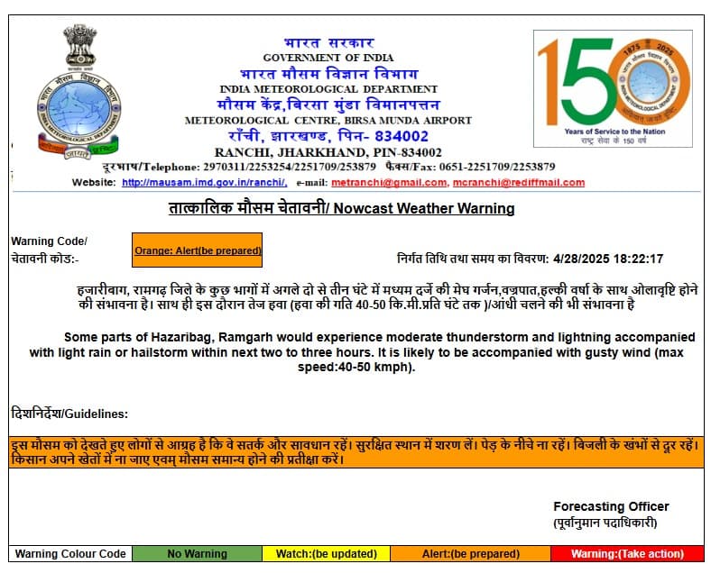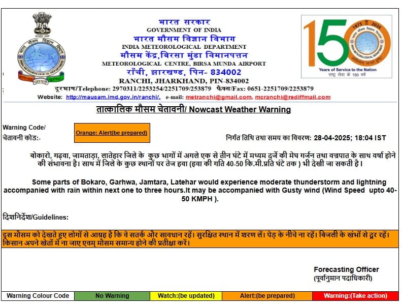 ये भी पढ़ें: Jharkhand Weather: झारखंड में तेज हवाओं के साथ झमाझम बारिश, गर्मी से राहत, 5 जिलों के लिए ऑरेंज अलर्ट