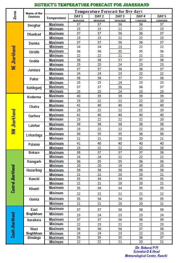 झारखंड के सभी जिलों के न्यूनतम और अधिकतम तापमान