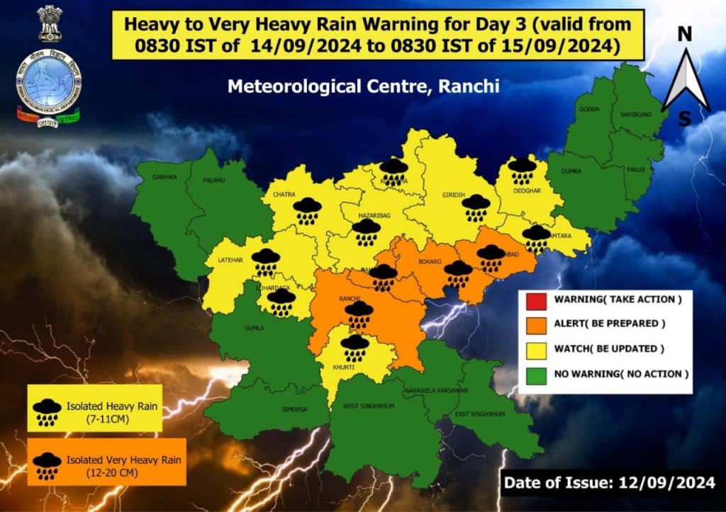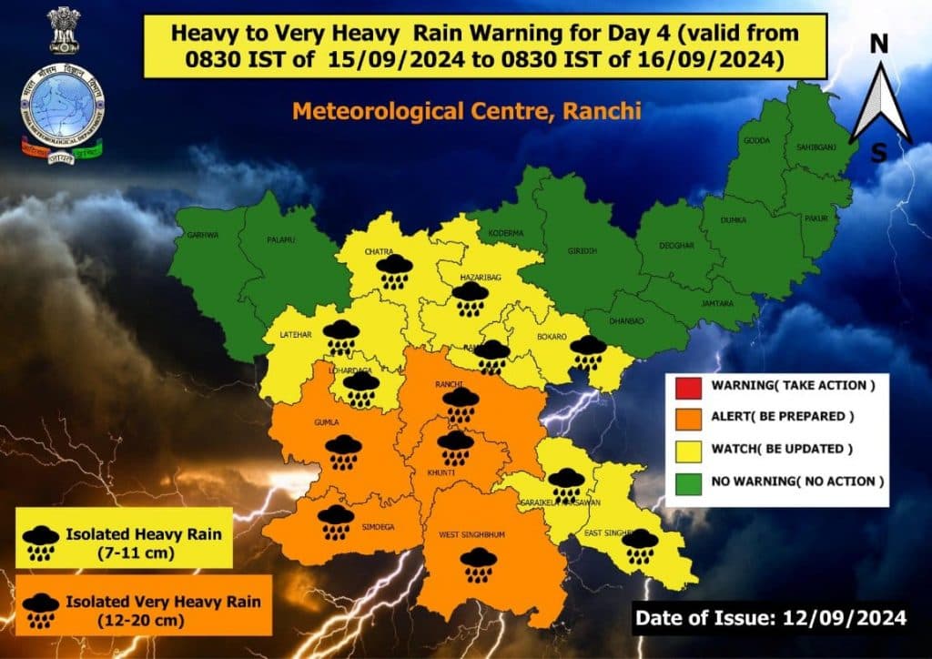 Jharkhand Weather Alert: झारखंड में 13 से 15 सितंबर तक भारी बारिश की चेतावनी, ऑरेंज अलर्ट जारी