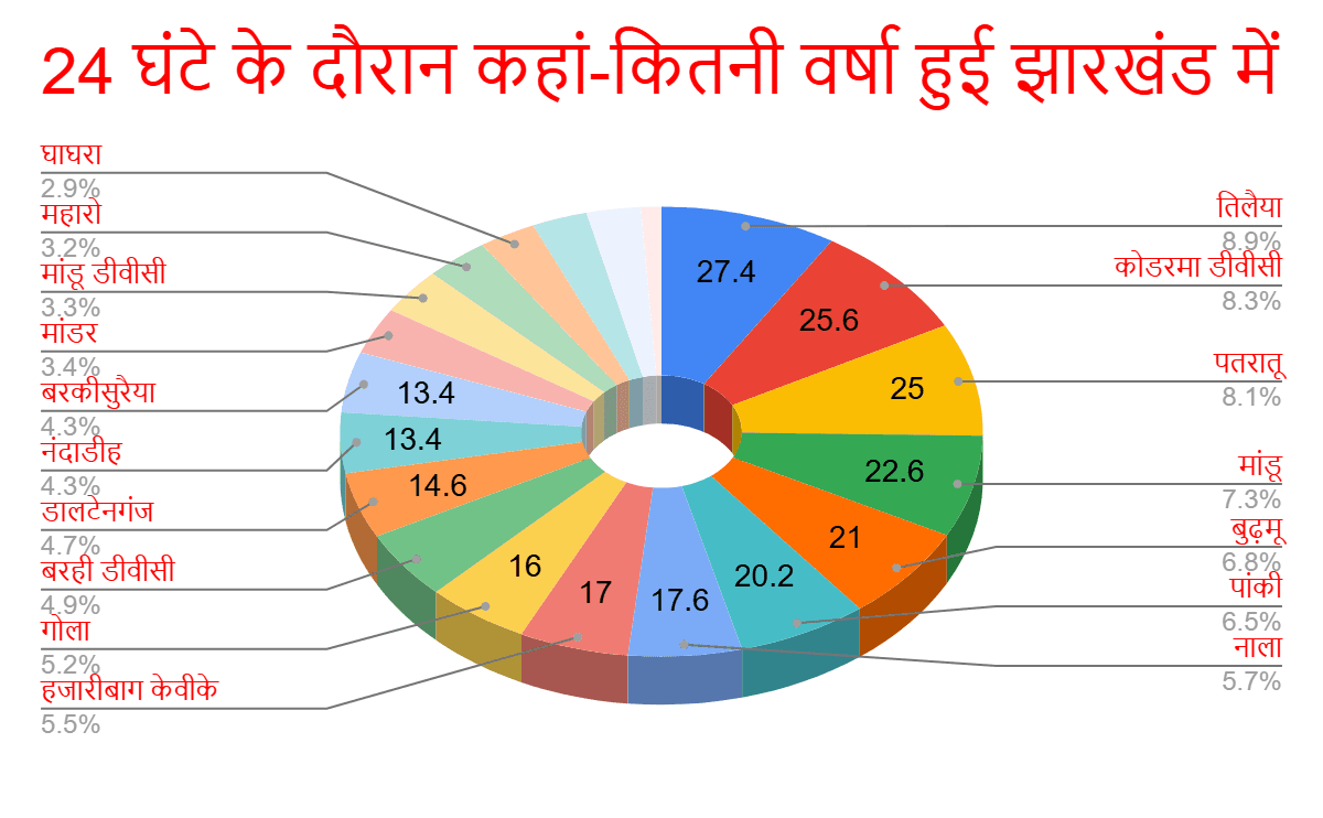 24 घंटे में झारखंड में कहां-कितनी वर्षा हुई