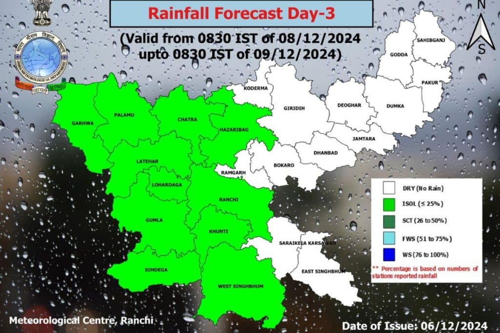 9 दिसंबर को झारखंड के इन जिलों में वर्षा होगी