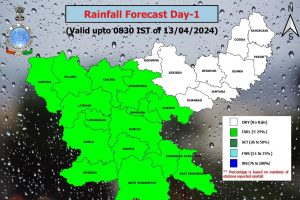 झारखंड के पश्चिमी, दक्षिणी एवं निकटवर्ती मध्य भागों में आज शुक्रवार को हल्के दर्जे की बारिश की संभावना है. अगले पांच दिनों के दौरान अधिकतम तापमान में धीरे-धीरे 4-5 डिग्री सेल्सियस की वृद्धि हो सकती है. 13 अप्रैल को राज्य के दक्षिण-पश्चिम भागों में कहीं-कहीं हल्के दर्जे की बारिश हो सकती है. 14 अप्रैल को राज्य के दक्षिणी एवं निकटवर्ती मध्य भागों में कहीं-कहीं बारिश के आसार हैं. मौसम विभाग की मानें, तो 15 अप्रैल से आसमान मुख्यत: साफ रहेगा और मौसम शुष्क रहेगा.