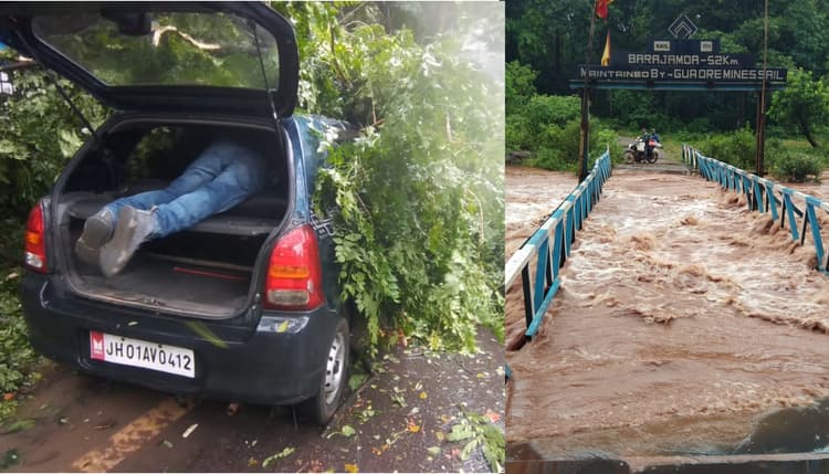 Weather Forecast Today: रांची : झारखंड की राजधानी रांची में गुरुवार को दिन भर रुक-रुककर कभी हल्की को कभी तेज बारिश हुई. दोपहर बाद काफी तेज हवाओं के साथ बारिश हुई. रांची-टाटा हाइवे पर नदी का पानी बहने लगा, जिससे एनएच-33 पर वाहनों की लंबी-लंबी कतारें लग गयीं. पश्चिमी सिंहभूम जिला के किरीबुरू में कोयना नदी में दो महिलाएं बह गयीं. रांची के मोरहाबादी में सूबे के पूर्व मुख्यमंत्री और झारखंड मुक्ति मोर्चा (झामुमो) के राष्ट्रीय अध्यक्ष दिशोम गुरु शिबू सोरेन के आवास के पास एक पेड़ उखड़कर एक कार पर गिर गया.
