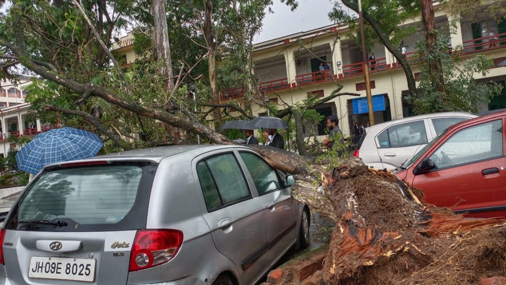 दो दिनों से हो रही बारिश ने जनजीवन को प्रभावित कर दिया है. वहीं तेज हवाओं का भी असर शहर में देखने को मिल रहा है. डोरंडा कॉलेज के पास कार के ऊपर गिरा पेड़