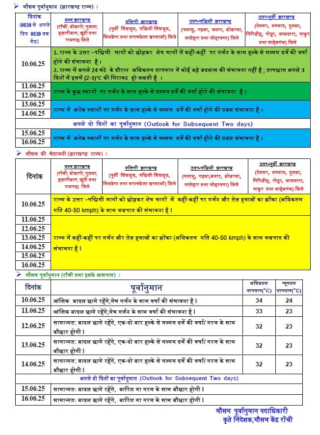 Jharkhand Weather: झारखंड में 11, 12, 13, 14, 15 और 16 जून को झमाझम बारिश, भीषण गर्मी से मिलेगी राहत, IMD का अलर्ट