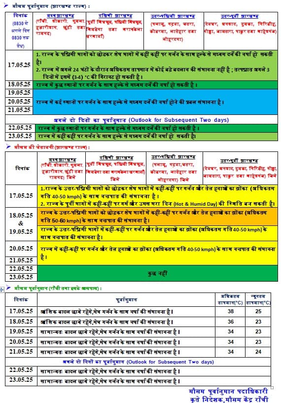 23 मई तक झारखंड में बारिश की संभावना