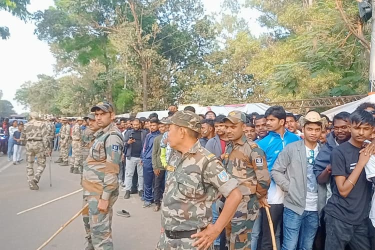 सड़क किनारे खेल प्रेमियों की लंबी कतार दिखी और पुलिस पदाधिकारी उन्हें नियंत्रित कर रहे थे. इनमें खेल का उत्साह देखते ही बन रहा था.