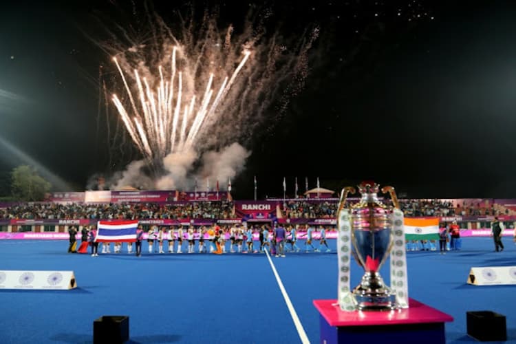 झारखंड वीमेंस एशियन चैंपियंस ट्रॉफी 2023 का रंगारंग आगाज हुआ. मरांग गोमके की धरती पर झारखंड की बेटी ने हैट्रिक लगाई और भारत का परचम लहराया.