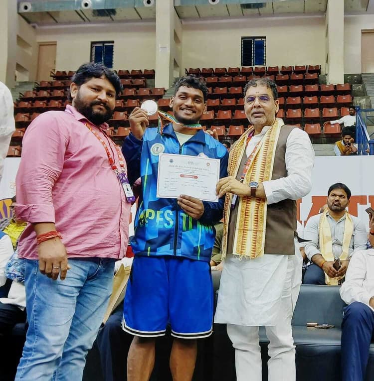 रांची. बेंगलोर में छह से आठ दिसंबर तक सीनियर नेशनल कुश्ती प्रतियोगिता का आयोजन किया गया है. शनिवार को झारखंड के पहलवान अमित कुमार गोप ने 77 किलोग्राम भार वर्ग में रजत पदक जीता. इन्हें भारतीय कुश्ती संघ के अध्यक्ष संजय कुमार सिंह और झारखंड कुश्ती संघ के महासचिव रजनीश कुमार ने शुभाशीष दिया. इनके अलावा संघ के अध्यक्ष जीशान कमर, भोलानाथ सिंह, विजय शंकर सिंह सहित अन्य ने बधाई दी. अमित के रजत पदक जीतने पर झारखंड कुश्ती संघ की ओर से 25 हजार रुपये की राशि देने की घोषणा की गयी है.