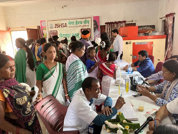रांची. झारखंड स्टेट हेल्थ सर्विसेज एसोसिएशन (झासा) रांची सहित सभी जिले के एक गांव को गोद लेकर वहां नि:शुल्क चिकित्सा सुविधा उपलब्ध करायेगा. इसी कड़ी में रविवार काे बुढ़मू पंचायत के चैनगढ़ा गांव में मेगा हेल्थ कैंप लगाया गया. कैंप में करीब 800 लोगों की स्वास्थ्य जांच की गयी. उन्हें दवा भी दी गयी. शिविर में फिजिशियन, सर्जन, इएनटी, आई, बाल रोग, स्त्री रोग विशेषज्ञ आदि ने लोगों को मरामर्श दिया. इस मौके पर पीवीटीजी ग्रुप के लोगों सहित अन्य का ब्लड सैंपल लेकर सिकल सेल एनीमिया, हीमोग्लोबिन, मलेरिया, शुगर आदि की जांच की गयी. जिन मरीजों को भर्ती करने की आवश्यकता हुई, उन्हें सीएचसी बुढ़मू और रांची सदर अस्पताल में भर्ती कराया गया. शिविर को सफल बनाने में चैनगढ़ा की मुखिया देवंती देवी, बुढमू पंचायत प्रमुख व उपप्रमुख के अलावा डॉ स्टीफन खेस्स, डॉ तारीक अनवर, सीएचसी बुढमू के प्रभारी चिकित्सा पदाधिकारी सत्यनारायण मुंडा आदि का सहयोग रहा.