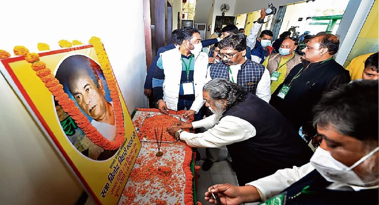 शिबू सोरेन ने बिनोद बिहारी महतो को दी श्रद्धांजलि व मधु मंसूरी को किया सम्मानित