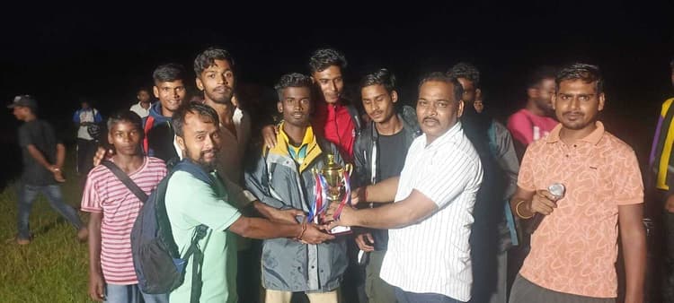 न्यू युवा संघ टेरो चटकपुर के तत्वावधान में आयोजित तीन दिवसीय फुटबॉल टूर्नामेंट का फाइनल मैच महुगांव मैदान में खेला गया. मैच में जोहार झारखंड व जय मसीह गिरिजा टोली के खिलाड़ियों ने कोई भी मैदानी गोल नहीं कर सके. निर्धारित समय के समाप्त होने पर रेफरी ने पेनाल्टी शूटआउट के माध्यम से निर्णय कराया. जिसमें जोहार झारखंड की टीम 1-0 गोल से विजयी रही. अतिथि विधायक प्रतिनिधि नवल किशोर सिंह ने मैच के विजेता टीम जोहार झारखंड, उपविजेता जय मसीह गिरिजा टोली लोयो व तृतीय स्थान पर रहनेवाली बाजारटांड़ मुरतो की टीम को प्राइज मनी व ट्रॉफी देकर सम्मानित किया. श्री सिंह ने कहा कि हमारे गांवों में प्रतिभावान खिलाड़ियों की कमी नहीं है. जरूरत है इन खिलाड़ियों को उचित माहौल व खेल सामग्री उपलब्ध कराना. प्रतियोगिता में 16 टीमों ने भाग लिया था. मौके पर मांगा पहन, महेश्वर गोप, आदित्य गोप, अमेरिका उरांव, शशि पाठक, दीपक गोप, बजरंग गोप व डॉ रुद्रा उपस्थित थे. वहीं प्रतियोगिता को सफल बनाने में न्यु युवा संघ के अध्यक्ष अमन टोप्पो, सचिन फूलदेव उरांव, कोषाध्यक्ष दीपू गोप व सदस्यों ने सहयोग किया.बेड़ो, विजेता टीम को पुरस्कार देते अतिथि व अन्य.B