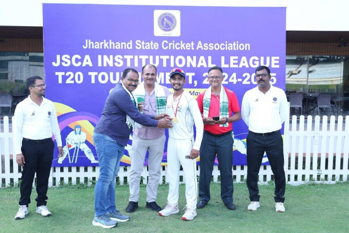 सेमीफाइनल में आरएसबी ने मेकन व सेल ने रूंगटा माइंस को हराया खेल संवाददाता, रांची आरएसबी ट्रांसमिशन और सेल यूनिट्स स्पोर्ट्स की टीमें जेएससीए इंस्टीट्यूशनल टी-20 लीग के फाइनल में पहुंच गयी हैं. दोनों टीमें बुधवार को खिताबी मुकाबले में भिड़ेंगी. मंगलवार को खेले गये पहले सेमीफाइनल में आरएसबी ट्रांसमिशन ने मेकन को पांच विकेट से हराया. वहीं, दूसरे सेमीफाइनल में सेल ने रूंगटा माइंस को 86 रन से पराजित किया. दोनों मैचों के लिए क्रमश: सुप्रियो चक्रवर्ती और प्रशांत सुमन को मैन ऑफ द मैच का पुरस्कार दिया गया. जेएससीए स्टेडियम के मुख्य ग्राउंड में खेले गये पहले सेमीफाइनल में मेकन ने पहले बल्लेबाजी की और पांच विकेट पर 144 रन बनाये. मेकन की ओर से अनिर्बान चटर्जी ने 42, विकास सिंह ने 38 व सत्यम जायसवाल ने 31 रन बनाये. आरएसबी की ओर से युवराज कुमार ने तीन, जबकि सुप्रियो चक्रवर्ती और अजय सोनू टी ने एक-एक विकेट लिये. जवाब में आरएसबी ट्रांसमिशन ने 18.2 ओवर में पांच विकेट गंवा कर लक्ष्य हासिल कर लिया. सुप्रियो चक्रवर्ती 70 और युवराज कुमार 44 रन बना कर नाबाद रहे. संकटमोचन ने दो, जबकि विकास, आकाश और शीट कुमार ने एक-एक विकेट लिये. दिन के दूसरे सेमीफाइनल में सेल ने आठ विकेट पर 169 रन बनाये. सेल की ओर से श्रेष्ठ सागर ने 40, विकास विशाल ने 31, उत्तम कुमार ने 27 और अश्विनी ने 24 रन का योगदान किया. रूंगटा माइंस की ओर से अजित कुमार व अनुराग संजय पूर्ति ने तीन-तीन विकेट लिये. अमोश एक्का व तन्मय तंतुबाई को एक-एक विकेट मिला. जवाब में रूंगटा माइंस की टीम 83 रन बना कर आउट हो गयी. टीम की ओर से प्रिंस व अनुराग ने 12-12, तन्मय ने 16 और अभिषेक ने 17 रन बनाये. सेल के प्रशांत सुमन ने पांच व पंकज यादव ने चार विकेट लिये. रित्विक पाठक को एक विकेट मिला.