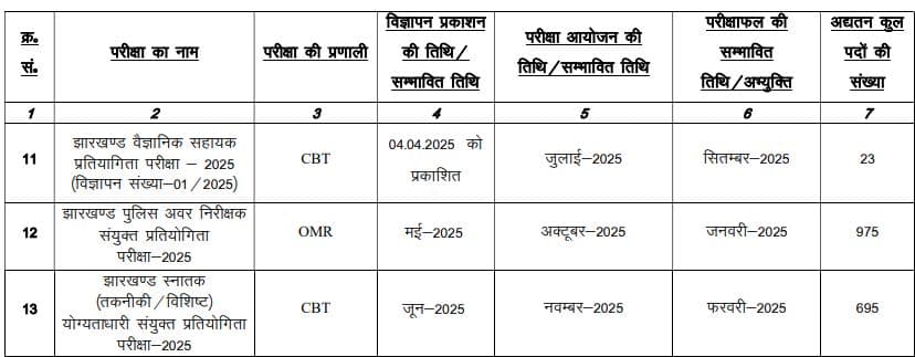 जेएसएससी की दूसरी गलती झारखंड स्नातक (तकनीकी/विशिष्ट) योग्यताधारी संयुक्त प्रतियोगिता परीक्षा-2025 के परीक्षाफल को लेकर ही है. इसके तहत 695 पदों पर नियुक्ति होनी है. जून में इसके लिए विज्ञापन जारी किया जाना है. जबकि नवंबर में परीक्षा का आयोजन होना है. लेकिन परीक्षाफल की संभावित माह फरवरी 2025 दिया गया है. जो बीत चुका है. जबकि आरक्षी के 4919 पदों पर होनी वाली भर्ती के लिए न ही परीक्षा की संभावित तिथि प्रकाशित की गयी है, न ही रिजल्ट को लेकर कोई अपडेट दिया गया है.