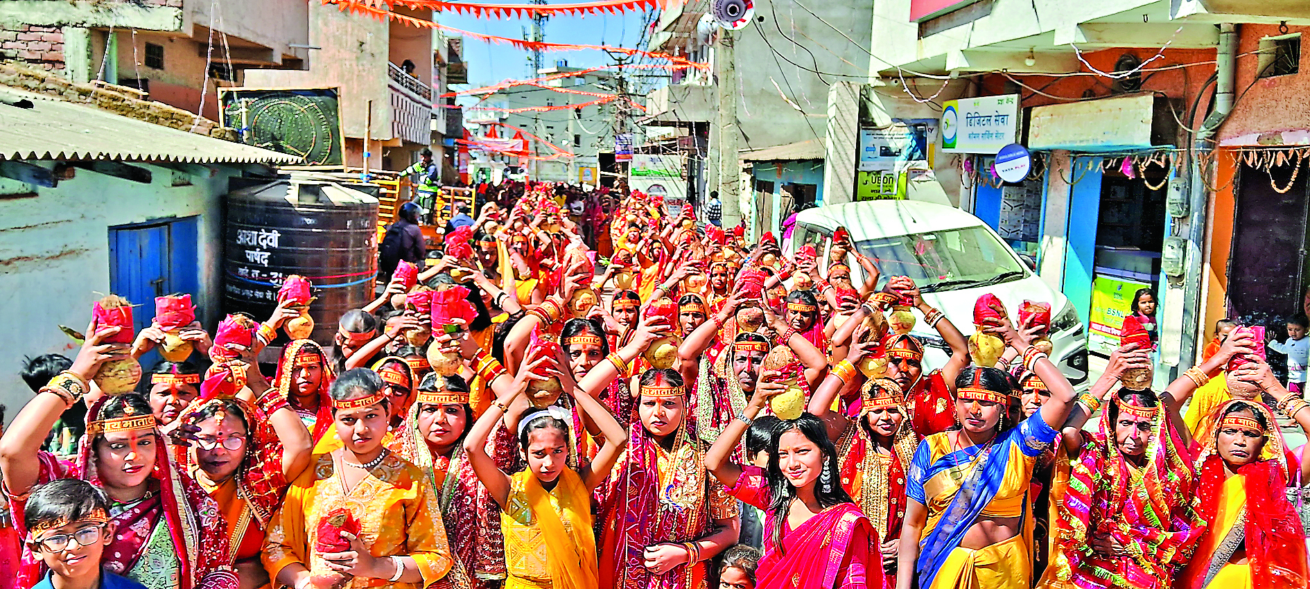 रांची. बाबा नगरी न्यू मधुकम रोड नंबर 5 ए /7 के प्रांगण में नवनिर्मित बाबा मंदिर के प्राण प्रतिष्ठा समारोह को लेकर शनिवार को बाजे-गाजे के साथ कलश शोभायात्रा निकाली गयी. यह शोभायात्रा चूना भट्ठा चौक, वीर अभिमन्यु चौक, जय प्रकाश नगर होते हुए श्री राणी सती दादी मंदिर परिसर पहुंची. वहां से कलश में जल लेकर पहाड़ी मंदिर, बालाजी मंदिर होते हुए वापस मंदिर परिसर पहुंचकर समाप्त हुई. कलश यात्रा में काफी संख्या में महिला श्रद्धालु शामिल हुईं. शोभायात्रा में विधायक सीपी सिंह भी शामिल हुए. उन्होंने भक्तों को कलश, चुनरी, जय माता दी का पट्टा दिया. अतिथि के रूप में राजीव रंजन मिश्रा, पूर्व पार्षद आशा देवी, भीम प्रभाकर, जितेंद्र वर्मा, मुकेश मुक्ता, विनोद राजन सहित अन्य उपस्थित थे. रविवार को प्रात: साढ़े आठ बजे से पूजा-अर्चना शुरू होगी. वहीं दोपहर दो बजे के बाद प्रतिमा का नगर भ्रमण होगा. मंदिर के अध्यक्ष पंकज सिन्हा ने कहा कि आयोजन को सफल बनाने में संस्थापक संरक्षक सुनील कुमार गुप्ता, संरक्षक अनिल कुमार गुप्ता, उपाध्यक्ष कृष्णा राज, सचिव अनिल प्रमाणिक, कोषाध्यक्ष चंदन कुमार, सतीश कुमार, कार्यकारिणी अध्यक्ष कंचन राय, कार्यकारिणी उपाध्यक्ष राकेश रंजन कुमार, समाजसेवी राजेश खंडेलवाल, भवन किशोर प्रसाद, सुनील साव, अनुज शर्मा, प्रमोद शर्मा, रमेश कुमार साव, राजेश विश्वकर्मा, सुनील कुमार मिस्त्री, संतोष गुप्ता, राहुल गुप्ता, विनोद राजन, ऋषभ गुप्ता, सागर गुप्ता, सूरज साव, बबलू साव, अनिल गुप्ता, मधुकर सिंह, धनंजय सोनी सहित अन्य सदस्यों का योगदान रहा.