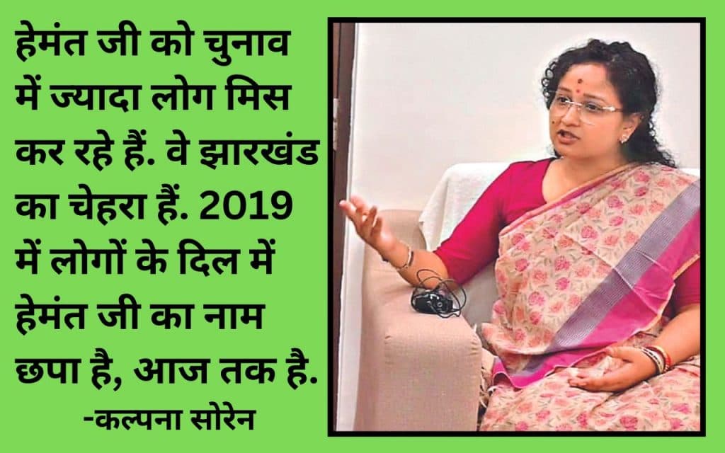 ये डिप्लोमेटिक नहीं, बहुत ही सही जवाब है. मैं आपको बता दूं कि मैं लोगों के बीच जाती हूं, तो लाेग मुझे हेमंत जी के बारे में पूछते हें. वे पूछते हैं कि जेल में कैसे हैं? लोग बोलते हैं कि पहले हमको यह बताइये, बाकी बात बाद में करेंगे. लोग कहते हैं कि मुझे यह बताइये, बेटा कैसा है? उनकी आंखों में जो दर्द दिख रहा होता है, उससे पता चल जाता है कि वे अपना बेटा ढूंढ रहे हैं. किसी की आंखें अपना भाई ढूंढ रही हैं, तो किसी की आखें अपना दादा ढूंढ रहा है. ये चुनाव नहीं चल रहा है, ये प्यार और आशीर्वाद हेमंत जी के लिए जो मैंने लोगों की आंखों में देखा है, वह चल रहा है. आपके सवाल का जवाब यही है कि झारखंड का नेतृत्व यहां की जनता कर रही है. जैसा कि पार्टी का नाम है, झारखंड मुक्ति मोर्चा. जब हमलोगों ने झारखंड को अलग कराया था, तो झारखंड एक-एक जनता, एक-एक व्यक्ति नेतृत्व कर रहा था.