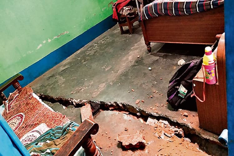 जेहलीटांड़ स्थित सीसीएल एनके एरिया के केडीएच कोयला खदान से 50 मीटर की दूरी पर भू-धंसान होने से एक मकान की दीवार समेत फर्श और आसपास की जमीन में दरारें आ गयीं. भू-धंसान के बाद अब दरारें लगातार चौड़ी होती जा रही है. घटना शुक्रवार दोपहर तीन बजे की है. जिस वक्त घटना घटी, उस वक्त मकान में साइमुन खातून, सज्जाद अंसारी, मुस्तरी बेगम व उनके बच्चे मौजूद थे. इस घटना में सज्जाद के पैर में चोट आयी है, जबकि एक बच्चा डर से बेहोश हो गया.