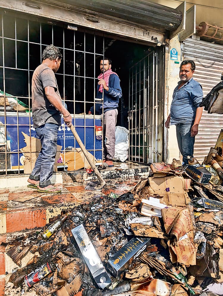 रांची. नये साल की रात सेल सिटी न्यू पुंदाग इलाके में स्थित एक वाइन शॉप में आग लग गयी. प्रत्यक्षदर्शियों के मुताबिक आग उस वक्त लगी, जब रात के वक्त दुकान का शटर डाउन था और सेल्समैन जा चुके थे. इस घटना में करीब 45 से 50 लाख रुपये की शराब जल कर बर्बाद हो गयी. आग की तपिश इतनी तेज थी कि बोतल के अंदर की शराब वाष्प बनकर उड़ गयी. बोतलें आपस में चिपक गयी और केन में भरी बीयर पटाखों की तरह काफी देर तक फटते रहे. घटना एक जनवरी की रात करीब 10:30 के बाद की है. आग बुझाते-बुझाते दमकम की गाड़ियों को करीब दो घंटे से ज्यादा लग गये. बताया जा रहा है कि यह आग शॉर्ट सर्किट की वजह से लगी. उत्पाद विभाग की मानें तो दुकान का सात दिन पहले ही ऑडिट किया गया था. डीप फ्रीजर पहले से खराब थी. शॉप में कोई वेंटिलेशन नहीं था, इसलिए आग शराब के खाली पड़े कार्टन में लगते हुए बोतलों में पैक अल्कोहल तक जा पहुंची. इसके बाद तेज धआका हुआ. समझा जाता है कि यह ब्लास्ट डीप फ्रीजर के कंप्रेशर में हुआ. बड़े पैमाने पर अल्कोहल ने आग को भड़का दिया और अंदर रखा सारा सामान और रेफ्रिजरेटर जल गया. इसके अगले दिन गुरुवार को दुकान बंद रहा. शुक्रवार को एक्साइज इंस्पेक्टर अभिषेक कुमार की मौजूदगी में दुकान का ताला खोलकर जले कार्टून और बड़ी संख्या में अंग्रेजी शराब की बोतलें बाहर निकाली गयीं.