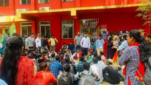 इंटर की पढ़ाई शुरू करने को लेकर रांची विवि मुख्यालय में की गयी तालाबंदी