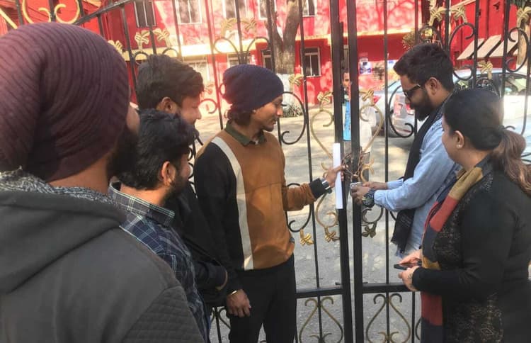 रांची (विशेष संवाददाता). डोरंडा कॉलेज में अनुबंध पर कार्यरत कर्मचारी इब्राहिम को हटाने की मांग को लेकर गुरुवार को एनएसयूआइ ने रांची विवि मुख्यालय में तालाबंदी की. तालाबंदी का नेतृत्व अब्दुल रबनवाज कर रहे थे. कुलपति के बाहर रहने व दूरभाष पर शनिवार को इस मुद्दे पर बात करने का आश्वासन मिलने और इसके बाद प्रॉक्टर डॉ मुकुंद चंद्र मेहता व रजिस्ट्रार विनोद नारायण को ज्ञापन सौंप कर एनएसयूआइ ने तालाबंदी समाप्त कर दी. इस आंदोलन का जेसीएम ने भी समर्थन किया. अब्दुल रबनवाज ने कहा कि 27 नवंबर को इब्राहिम ने उनके साथ हाथापाई की और गालियां दीं. इसकी शिकायत प्राचार्य को लिखित रूप से की गयी थी. लेकिन इस पर कोई कार्रवाई नहीं की गयी. इसके बाद ही आज विवि मुख्यालय में तालाबंदी की गयी. एनएसयूआइ ने विवि मुख्यालय के मेन रोड स्थित मुख्य द्वार को पुन: खोलने की मांग की. साथ ही प्रत्येक वर्ष छात्र संघ चुनाव कराने के लिए उच्च स्तरीय समिति बनाने की भी मांग की. आज के इस कार्यक्रम में राष्ट्रीय संयोजक आरूषी वंदना, विश्वजीत, अमन राज, अकमल राजा, शाहिद, राजू, विनीत, पिंटू, शोएब आदि उपस्थित थे.