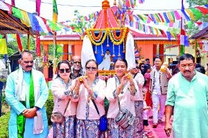 इससे पहले सुबह 9:45 बजे मंदिर में मुख्य ध्वजारोहण हुआ, जबकि 10 बजे दीप प्रज्वलन किया गया. प्रातःकाल से ही पूजा-अर्चना का सिलसिला शुरू हो गया था. बड़ी संख्या में श्रद्धालु पूजा में शामिल हुए. जैप वन के समादेष्टा राकेश रंजन भी पूजा में शामिल हुए. दोपहर दो बजे आशीर्वचन कार्यक्रम और सामूहिक प्रसाद वितरण हुआ. पूजा अनुष्ठान का संचालन दार्जिलिंग से आये कुनसंग लामा, गुप्तेन लामा, दिप्तिन लामा, संगे कर्मा और स्थानीय अरुण लामा ने किया. इस अवसर पर विधायक रामेश्वर उरांव, कांग्रेस नेता आलोक दुबे, अजय नाथ शाहदेव आदि उपस्थित थे.छोटानागपुर बौद्ध सोसाइटी