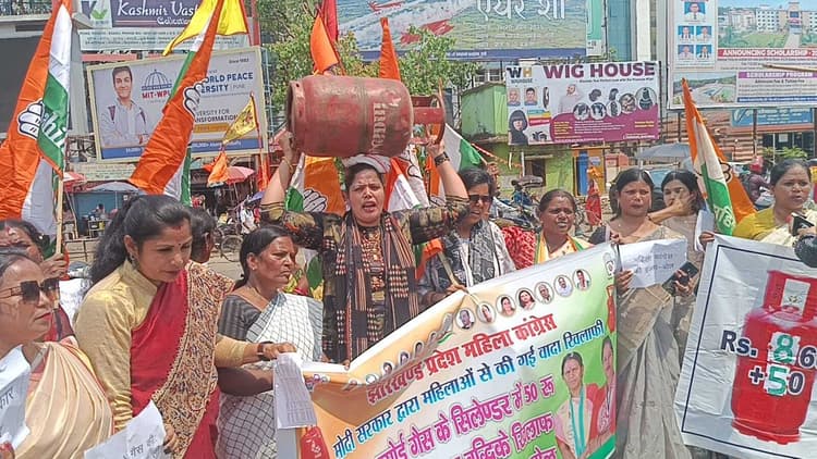 रांची (वरीय संवाददाता). रसोई गैस के सिलेंडर की मूल्य वृद्धि, बेरोजगारी, गिरती अर्थव्यवस्था और केंद्र सरकार की गलत नीतियों के खिलाफ सोमवार को प्रदेश महिला कांग्रेस कमेटी की ओर से अल्बर्ट एक्का चौक (रांची) पर प्रदर्शन किया गया. इस दौरान महिला कांग्रेस की नेताओं ने बढ़ती महंगाई के खिलाफ सांकेतिक रूप से गैस सिलेंडर उठा कर केंद्र सरकार के खिलाफ नारेबाजी की. इस मौके पर महिला कांग्रेस अध्यक्ष गुंजन सिंह ने कहा कि केंद्र की भाजपा सरकार ने बढ़ती महंगाई पर नियंत्रण लाने के मुद्दे से मुंह मोड़ लिया है. इनका एकमात्र लक्ष्य है कि कैसे सरकारी और निजी कंपनियों की जेब भरी जाये. उन्होंने केंद्र सरकार से देश की महिलाओं और गरीब परिवारों के लिए विशेष राहत पैकेज की घोषणा करने की मांग की. कहा कि आज देश भर की महिलाएं महंगाई से त्रस्त हैं और वे हमारे साथ आंदोलन में जुड़ रही हैं. कहा कि चुनावी जुमले देने वाले देश के प्रधानमंत्री और गृहमंत्री जवाब दें और तत्काल कदम उठाते हुए रसोई गैस, डीजल व पेट्रोल की आसमान छूती कीमतों और महंगाई से राहत दें. विरोध प्रदर्शन में सुंदरी तिर्की, नीलम सहाय, पार्वती सिंह, सीमा साहु, सरिता देवी, रीना सांगा, अंजू देवी, मेरी तिर्की, शहनाज खातून, शीला उरांव, अनीता सिंह, पूजा कुमारी, कंचन कुमारी दास, महिमा सिन्हा, अंजू कुमारी, अनुराधा, मीना देवी समेत कई महिलाएं शामिल थीं.