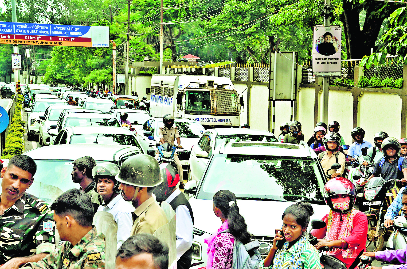 इधर, दोपहिया वाहनों को भी एसएसपी आवास तथा कचहरी से राजभवन होते हुए कांके रोड की ओर नहीं जाने दिया जा रहा था. इस कारण रातू रोड जाने वाले वाहनों को काफी घूम कर जाना पड़ रहा था. रातू राेड से सीधे पिस्का मोड़ तथा पिस्का मोड़ से रातू रोड की ओर आने नहीं दिया जा रहा था. इस कारण रातू रोड जाने वालों को काफी परेशानी हो रही थी. पिस्का मोड़ से रातू रोड आने वाहनों के लिए पिस्का मोड़ से इटकी रोड, कटहल मोड़, अरगोड़ा व हरमू बाइपास होते हुए आने का रूट तय किया गया था. इस कारण पूरा रोड जाम हो गया था. उसी प्रकार कांके रोड भी बंद कर दिया गया था. कांके रोड की ओर जानेवाले वाहनों का रूट करमटोली, चिरौंदी, बोड़ेया, अरसंडे होते हुए तय किया गया था. वहीं, अधिकतर जगहों पर सिग्नल की लाइट बंद कर मैनुअली ट्रैफिक संभाला जा रहा था. इस कारण करमटोली चौक, न्यू मार्केट चौक, सहजानंद चौक, अरगोड़ा चौक सहित अन्य जगहों पर वाहनों की लंबी कतार लग गयी थी.