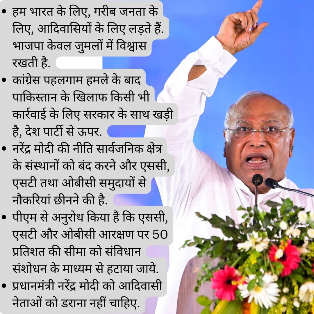 कांग्रेस अध्यक्ष खरगे ने दावा किया कि सार्वजनिक क्षेत्र के उपक्रमों के कर्मचारियों को महीनों तनख्वाह नहीं मिलती है. प्रधानमंत्री मोदी कहते हैं कि सभी बहुत सुखी हैं. उन्होंने आरोप लगाया, ‘नरेंद्र मोदी की नीति है- पीएसयू बंद करो और दलितों, आदिवासियों और पिछड़ों की नौकरी छीन लो.’