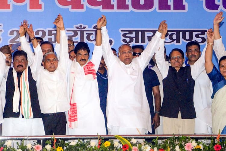 Mallikarjun Kharge in Jharkhand: झारखंड की राजधानी रांची के पुराना विधानसभा के सामने मैदान में आयोजित संविधान बचाओ रैली को संबोधित करते हुए कांग्रेस के राष्ट्रीय अध्यक्ष मल्लिकार्जुन खरगे ने भाजपा और केंद्र सरकार पर जमकर हमला बोला. संविधान बचाओ रैली से खरगे ने कहा कि 22 अप्रैल को देश में एक बहुत बड़ा आतंकी हमला हुआ. इसमें 26 बेगुनाह लोग मारे गये. इस मामले में सरकार ने माना कि ये इंटेलिजेंस फेल्योर है और इसे सुधारने की जरूरत है. कांग्रेस अध्यक्ष ने सरकार से पूछा कि जब सरकार को इंटेलिजेंस की जानकारी थी, तो पहले ही अच्छी व्यवस्था क्यों नहीं की गयी? खरगे ने कहा कि देश की खुफिया एजेंसियों ने आतंकी हमले की आशंका जतायी थी. इस सूचना के बाद ही पीएम मोदी ने भी अपना कश्मीर दौरा रद्द कर दिया था. ऐसे में मेरा सवाल है कि जब खुफिया एजेंसियों ने आतंकी हमले की आशंका जतायी थी, तो सरकार ने इस बारे में सभी को अलर्ट क्यों नहीं किया?