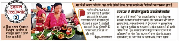 डीबडीह निवासी मंजुला ने ट्राइबल खान-पान को अपना व्यवसाय बनाया और घर से ही इसे छोटे स्तर पर शुरू किया. अपनी लगन से उन्होंने झारखंडी खान-पान को अंतरराष्ट्रीय पहचान दिलायी. यही वजह है कि उनके बनाये अचार की डिमांड आज यूरोप और अमेरिका तक में हो रही है. मंजूला ने पारंपरिक खान-पान में नये इनोवेशन किये है. वे रूगड़ा, मशरूम, गुलर, संधना, फुटकल, कुदरूम और यहां तक की कई तरह के पत्तों से भी अचार बना लेती हैं. इसके अलावा वे निमकी, पीठा व केक भी बनाती हैं. मंजुला शिक्षा विभाग में कार्यरत हैं. कार्यालय से बचे हुए समय में वे यही काम करती है. उनका घर ही उनका वर्कशॉप है, जहां आर्डर लेने से लेकर खाना बनाने और डिलीवरी तक का काम होता है. उन्होंने चार लड़कियों को भी अपने साथ काम पर रखा है. इनमें दो तो हमेशा रहती हैं. ऑर्डर ज्यादा होने पर दो और को रखती हैं. वे कहती हैं कि खाना बनाना मेरे लिए शुरू से ही एक पैशन रहा है. उसमें भी खासकर छोटानागपुर के आदिवासी ट्रेडिशन से आनेवाले खान-पान में विशेष रुचि रही है. उन्होंने कहा कि अब इस काम को करते हुए 10 साल हो गये हैं.डिस्क्लेमर: यह प्रभात खबर समाचार पत्र की ऑटोमेटेड न्यूज फीड है. इसे प्रभात खबर डॉट कॉम की टीम ने संपादित नहीं किया है