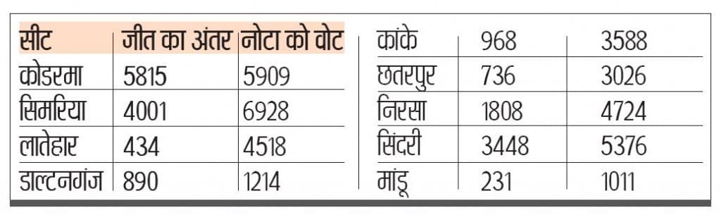 Jharkhand Election Result 2024 : झारखंड में इस बार नोटा को कई प्रत्याशियों को अधिक वोट मिले हैं. वहीं कई ऐसे विधायक हैं जिनका जीत का अंतर नोटा में पड़े वोटों से भी कम है.