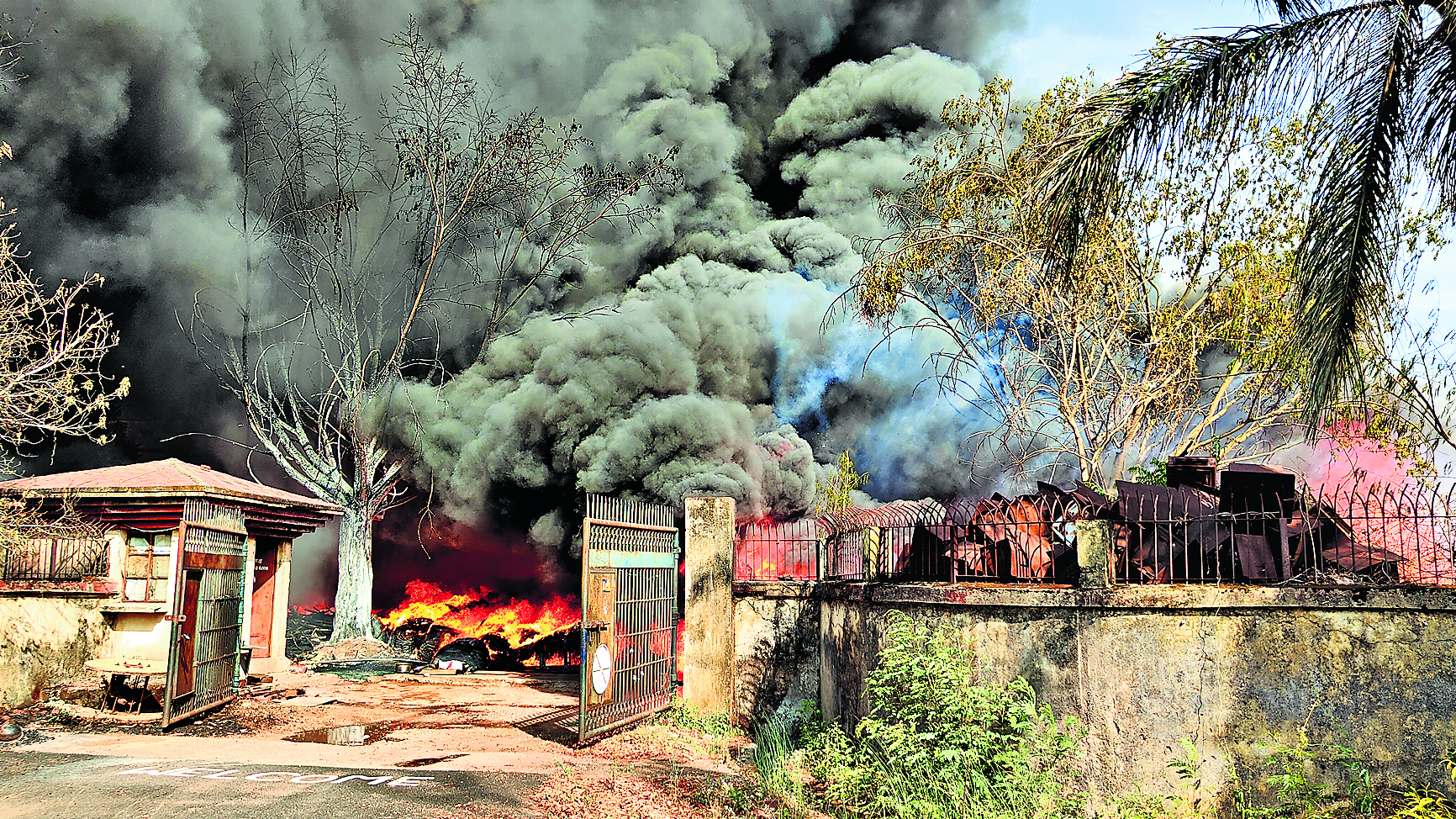 प्रभात खबर टीम(रांची/मेसरा). बीएसएनएल के रांची-हजारीबाग रोड पर जुमार पुल के समीप गेतलातू में करीब पौने पांच एकड़ जमीन पर बने ओपेन गोदाम में रविवार दोपहर करीब 12:45 बजे आग लग गयी. यह आग सबसे पहले गोदाम के मुख्य दरवाजे के बगल में स्थित गार्ड रूम के समीप लगी. देखते ही देखते आग ने विकराल रूप धारण कर लिया. पूरे गोदाम परिसर में तेजी से फैल गयी. इससे बीएसएनएल का खुले में रखा करोड़ों रुपये का केबल सहित अन्य सामान जल गये. परिसर में स्थित गार्ड क्वार्टर, कार्यालय और अन्य कमरे भी जल गये. आग की भयावहता का अंदाजा इसी से लगाया जा सकता है कि करीब पांच किलोमीटर का दायरा धुएं से भर गया. गोदाम परिसर में लगी आग की तपिश इतनी तेज थी कि 10 फीट दूर से भी इसकी लपटें झुलसानेवाली थीं. शाम 7:00 बजे तक 20 प्रतिशत हिस्से में लगी आग पर ही काबू पाया जा सका था.