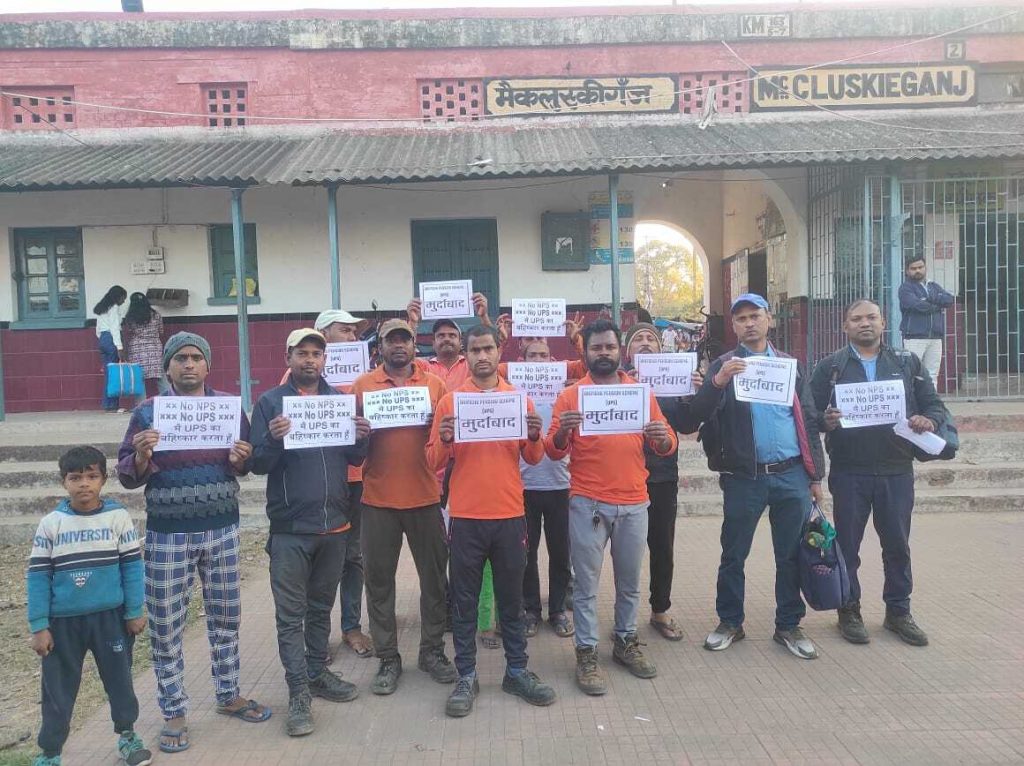 यूनिफाइड पेंशन स्कीम (यूपीएस) के खिलाफ रेलवे कर्मचारियों ने मंगलवार की शाम मैक्लुस्कीगंज रेलवे स्टेशन परिसर में गजट नोटिफिकेशन की प्रतियां जलाकर जोरदार विरोध प्रदर्शन किया.