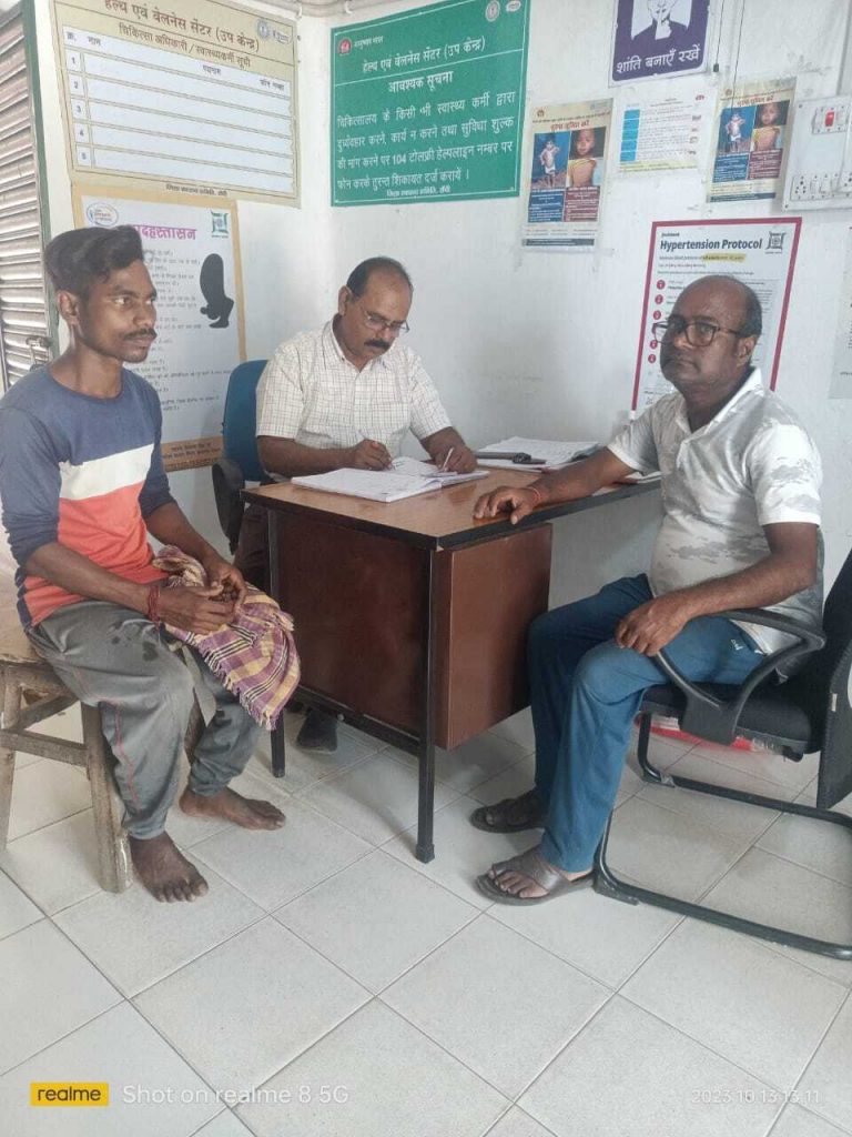 चिकित्सा पदाधिकारी डॉ रवींद्र कुमार बुधवार को प्राथमिक स्वास्थ्य केंद्र मैक्लुस्कीगंज में इलाज कराने आये ग्रामीणों को सलाह दी.