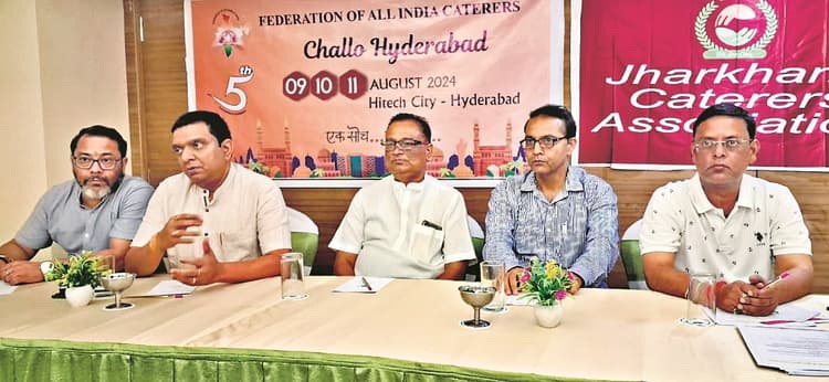 रांची. झारखंड कैटरर्स एसोसिएशन और फेडरेशन ऑफ ऑल इंडिया कैटरर्स (एफएआइसी) के तत्वावधान में रविवार को बैठक हुई. बैठक के पूर्व संवाददाता सम्मेलन में एफएआइसी के प्रतिनिधि दिनेश शर्मा ने कहा कि तीन दिवसीय राष्ट्रीय सम्मेलन (पांचवां कन्वेंशन एवं एग्जीबिशन) हैदराबाद की हाइटेक सिटी में नौ से 11 अगस्त तक होगा. इसमें देश भर से लगभग 6,000 कैटरर्स के आने की संभावना है.