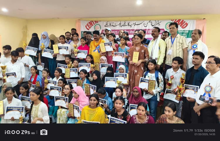सेंट्रल अंजुमन इस्लामिया कांके प्रखंड ने रविवार को प्रखंड स्तरीय सम्मान समारोह का आयोजन किया. जिसमें प्रखंड के जैक, सीबीएसइ व आइसीएसइ बोर्ड के 75 मेधावी छात्र-छात्राओं को मोमेंटो व प्रशस्ति पत्र देकर सम्मानित किया गया. मुख्य अतिथि विधायक सुरेश कुमार बैठा ने कहा कि मैट्रिक की परीक्षा पहली सीढ़ी है. इस लक्ष्य को अंतिम नहीं समझना है. जिस भी क्षेत्र में लक्ष्य पाना है, उसके लिए अभी से ही कड़ी मेहनत करें. वहीं प्रखंड के छात्र जुल्कर नैन, हैदर व छात्रा अनम को नीट की परीक्षा व एक छात्रा नौशीन फातिमा को क्लैट की परीक्षा में सफल होने पर मोमेंटो व प्रशस्ति पत्र देकर सम्मानित किया गया. अंजुमन के अध्यक्ष अब्दुल रहमान ने छात्रा ममता कुमारी का बकाया 18 हजार रुपये फीस भरने की घोषणा की. विधायक ने ममता को पांच हजार, प्रखंड अध्यक्ष संजर खान, मोजीब अली, आमना खातून ने 18 हजार देकर उसकी फीस की रकम दी. छात्रों को विशिष्ट अतिथि कोल इंडिया के पूर्व चेयरमैन गोपाल सिंह, डाॅ शाहिद इकबाल, पूर्व जीएम सीसीएल बीपी सिंह, बीआइटी के प्रो डाॅ शाह फहद, स्टेट टैक्स अफसर अफरोज आलम, हाजी अब्दुल रहमान, मजीद अंसारी, एनुल हक अंसारी आदि ने सम्मानित किया.फोटो, प्रखंड के मेधावी छात्रों के साथ विधायक सुरेश बैठा व अन्य.B