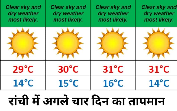 Jharkhand Weather: झारखंड में तापमान बढ़ने लगा है. पछुआ हवाओं की वजह से सुबह-शाम थोड़ी ठंड है, लेकिन न्यूनतम तापमान में वृद्धि होने लगी है. दो दिन में रांची का पारा 4.4 डिग्री तक चढ़ गया है. इसकी वजह से दिन में लोगों को धूप की गर्मी अब अच्छी नहीं लग रही. राजधानी रांची का अधिकतम तापमान 28 डिग्री है, जबकि न्यूनतम तापमान 15.5 डिग्री पहुंच गया है. यह सामान्य से 4 डिग्री अधिक है. अधिकतम तापमान भी सामान्य से 3 डिग्री अधिक है.