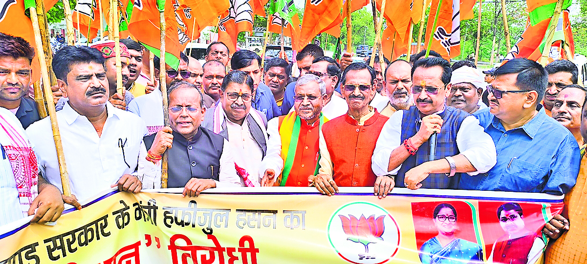 भाजपा के कार्यकारी प्रदेश अध्यक्ष डॉ रवींद्र कुमार राय ने कहा कि हेमंत सरकार के कार्यकाल में संविधान, सद्भाव व राष्ट्रवाद असुरक्षित है. उन्होंने कहा कि झारखंड के मंत्रियों के बिगड़े बोल से जनमानस में काफी आक्रोश है. उन्होंने कहा कि मंत्री हफीजुल हसन का बयान काफी आपत्तिजनक है. मंत्री हफीजुल का यह बयान कि संविधान हाथ में और शरीयत दिल में है, से उनकी मंशा स्पष्ट होती है. इससे जनता को सावधान रहने की जरूरत है. उन्होंने कहा कि मंत्री हफीजुल हसन की बर्खास्तगी तक भाजपा की यह लड़ाई जारी रहेगी.डिस्क्लेमर: यह प्रभात खबर समाचार पत्र की ऑटोमेटेड न्यूज फीड है. इसे प्रभात खबर डॉट कॉम की टीम ने संपादित नहीं किया है