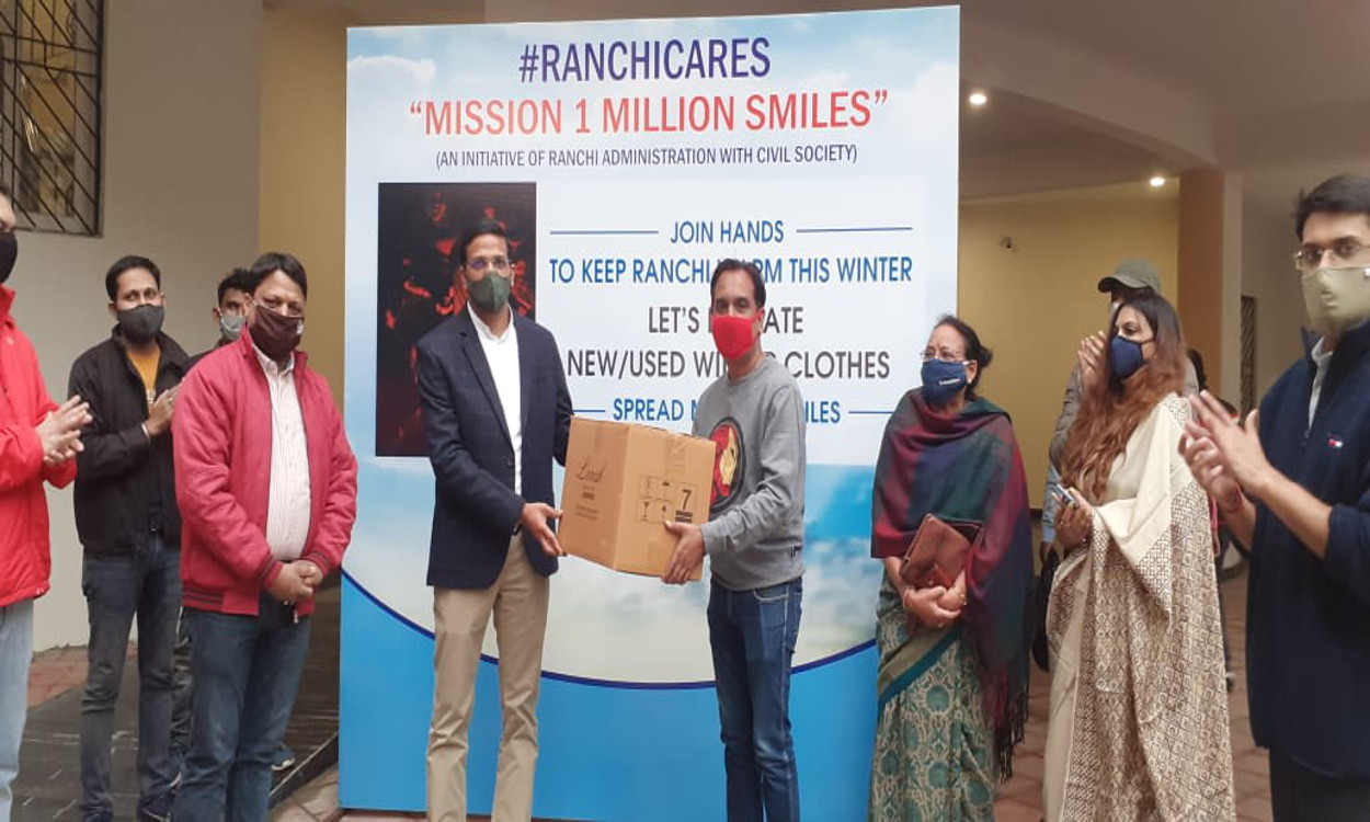 Jharkhand news, Ranchi news : रांची : ठंड के मौसम में जरूरतमंदों को गर्म कपड़े समेत अन्य सामान उपलब्ध हो, ताकि उसके चेहरे पर भी मुस्कान आ सके. इसी उद्देश्य से रांची डीसी छवि रंजन ने गुरुवार (26 नवंबर, 2020) को मिशन वन मिलियन स्माइल्स अभियान (Mission One Million Smiles Campaign) की शुरुआत की. इस अवसर पर जिले के एक दर्जन से अधिक सामाजिक संगठनों के प्रतिनिधि उपस्थित रहे. एकजुट प्रयास से जरूरतमंदों के चेहरे पर मुस्कान लाने के सामूहिक संकल्प के साथ इस मुहिम की शुरुआत की गयी.
