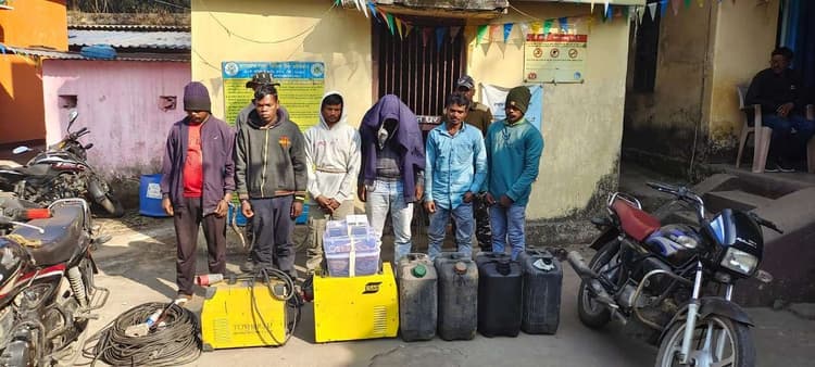 खलारी थाना क्षेत्र में कई वर्षों से डीजल चोरी और अन्य आपराधिक घटनाओं को अंजाम देने वाले कुख्यात ‘गुलेल गैंग/मंकी कैप गैंग’ पर पुलिस ने बड़ी कार्रवाई करते हुए छह अपराधियों को गिरफ्तार किया है. जबकि दो अपराधी भागने में सफल रहे. थाना प्रभारी इंस्पेक्टर जयदीप टोप्पो ने बताया कि उक्त कार्रवाई खलारी थाना कांड संख्या 79/2025 (दिनांक 09.11.2025) के तहत दर्ज मामले के अनुसंधान के दौरान की गयी है. बताया कि 08/09 नवंबर 2025 की रात केडीएच माइंस स्थित मधुकॉन कंपनी के निर्माणाधीन बंकर साइट से आठ से 10 अज्ञात अपराधियों ने सैकड़ों लीटर डीजल और अन्य कीमती सामान की चोरी की थी. गार्ड द्वारा रोकने का प्रयास करने पर अपराधियों ने उसके साथ मारपीट कर उसे गंभीर रूप से घायल कर दिया था. सभी अपराधी बंदर टोपी (मंकी कैप) पहने हुए थे और हाथों में गुलेल लिये थे. घटना की जानकारी मिलते ही पुलिस ने प्राथमिकी दर्ज कर अनुसंधान शुरू किया. इसी क्रम में 13 नवंबर को पुलिस को गुप्त सूचना मिली कि ग्राम केकराहीगढ़ा के निकट जंगल में आठ से 10 अपराधी फिर से डीजल चोरी की योजना बना रहे हैं. पुलिस टीम जैसे ही मौके पर पहुंची, अपराधी भागने लगे. लेकिन घेराबंदी कर छह आरोपियों को गिरफ्तार कर लिया गया. जबकि दो लोग अंधेरे का लाभ उठाकर फरार हो गये. उन्होंने बताया कि गिरफ्तार अपराधियों के पास से गैलन, गुलेल, बंदर टोपी, रिंच, एंकर सहित कई उपकरण बरामद किये गये हैं. पूछताछ में गिरफ्तार अपराधियों ने स्वीकार किया कि वे कई वर्षों से पिपरवार, आम्रापाली और एनके क्षेत्र में डीजल चोरी और अन्य घटनाओं को अंजाम देते रहे हैं. पहचान छिपाने के लिए वे बंदर टोपी पहनते थे और गार्ड व मजदूरों को डराने के लिए गुलेल का उपयोग करते थे. उन्होंने 08/09 नवंबर की घटना तथा 12/13 अप्रैल 2025 को केडीएच साइडिंग बंकर के पास डीजल चोरी के दौरान गार्ड पर हमले की घटना में भी संलिप्तता स्वीकार की.गिरफ्तार आरोपी :