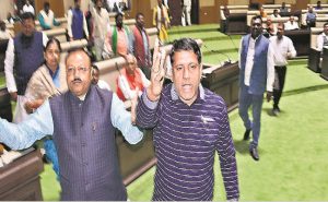 कहा सदन गुंडागर्दी की जगह नहीं है. इस शब्द का अर्थ आप समझ नहीं सके. उन्होंने तुरंत मार्शल को बुला कर रणधीर सिंह को सदन से आउट करने का निर्देश दिया. इसके बाद मार्शल रणधीर सिंह को सदन से बाहर ले गये. स्पीकर के आदेश से विधायक रणधीर सिंह पहली पाली में सदन की कार्रवाई से बाहर रहे. हालांकि वह दूसरी पाली में सदन पहुंचे़
