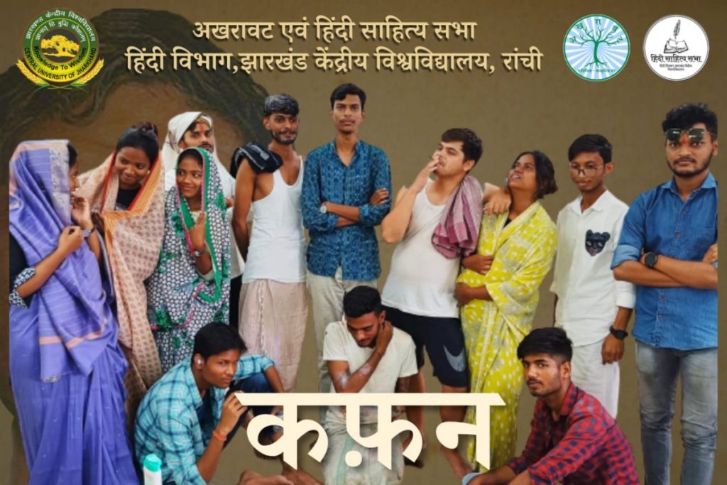 मुंशी प्रेमचंद की कहानी कफन का झारखंड केंद्रीय विश्वविद्यालय के विद्यार्थियों ने मंचन किया. इसके कलाकारों ने शानदार अभिनय से सभी दर्शकों का मन मोह लिया. नाटक का निर्देशन भुवनेश कुमार प्रधान ने किया और पटकथा एवं संवाद लेखन कार्य अरुण कुमार ने किया.