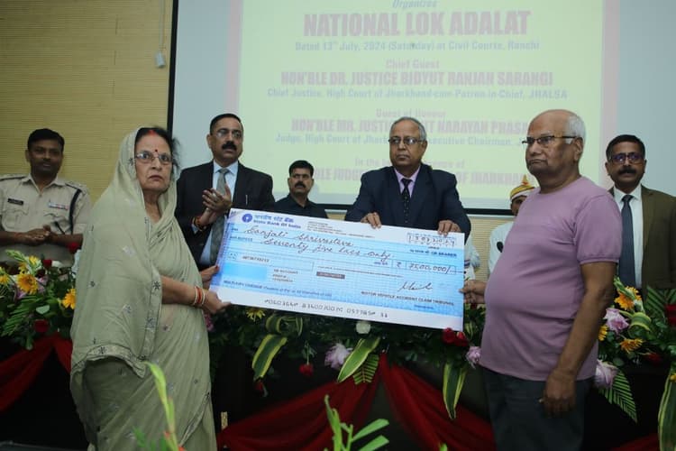 National Lok Adalat 2024: रांची-रांची सिविल कोर्ट में शनिवार को राष्ट्रीय लोक अदालत लगायी गयी. इसमें 10 करोड़ से अधिक की मुआवजा राशि का विवाद सुलझा. कुल 86,638 मामलों का निबटारा किया गया. 50 लाख रुपए से अधिक की मुआवजा राशि वितरित की गयी. झारखंड हाईकोर्ट के चीफ जस्टिस विद्युत रंजन सारंगी ने पीड़ितों के बीच मुआवजा राशि का वितरण किया.