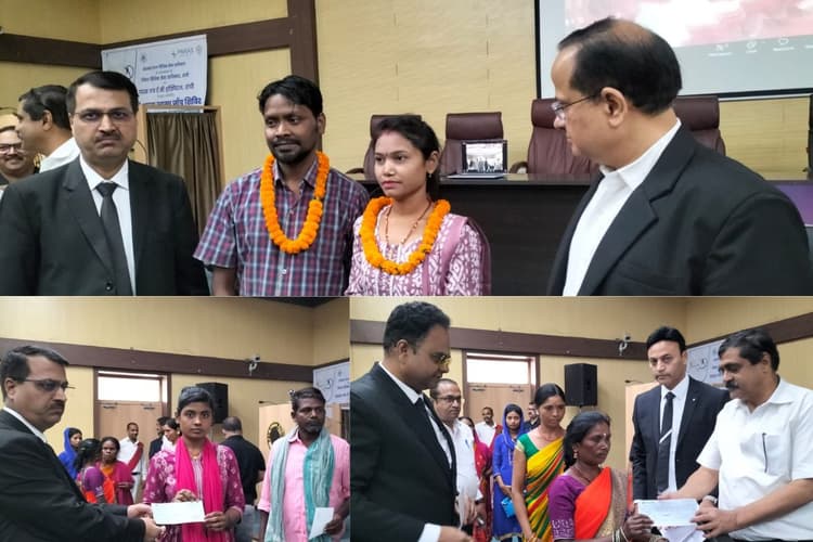 राष्ट्रीय लोक अदालत में लाभुकों के बीच न्यायायुक्त अनिल कुमार मिश्रा ने चेक का वितरण किया. उन्होंने वाहन दुर्घटना मुआवजे के तौर पर मदेश्वर पांडे को 98,87,965 रुपये का चेक सौंपा. पीड़ित मुआवजा के रूप में न्यायुक्त ने रानी देवी को 5,00,000 का चेक प्रदान किया. न्यायायुक्त ने दिव्यांगजनों सोनू गोप और वसीम खान को व्हील चेयर दिया. अन्य न्यायिक पदाधिकारियों ने झारखंड पीड़ित मुआवजा के तहत कुल 25 पीड़ितों के बीच 68,00,000 रुपए का चेक दिया. इसके साथ ही वाहन दुर्घटना मुआवजा में न्यायिक पदाधिकारियों ने पीड़ितों के बीच 73,55,851 रुपए के चेकों का वितरण किया.