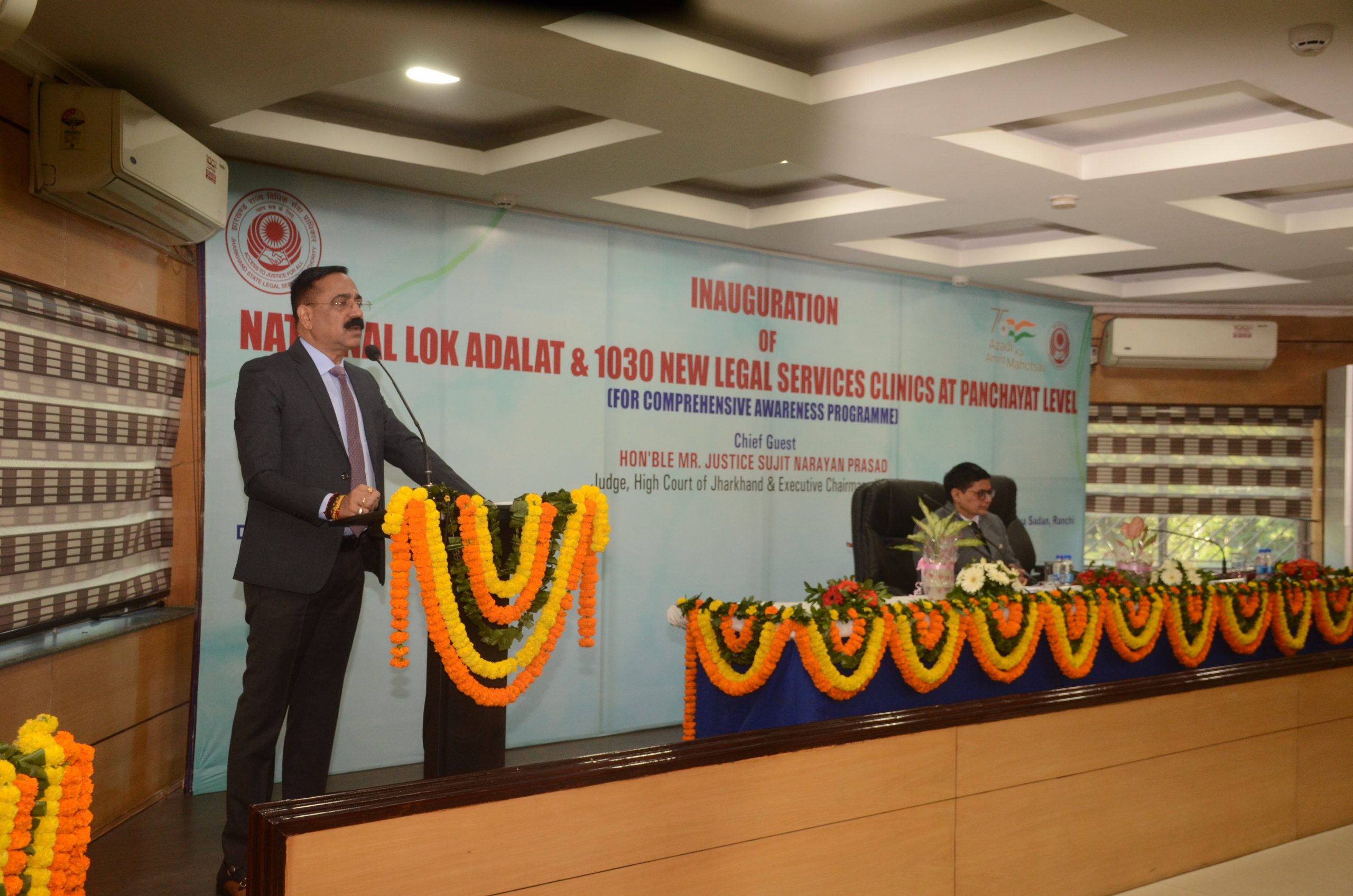 रांची. झारखंड राज्य विधिक सेवा प्राधिकार (झालसा) के दिशा-निर्देश पर झारखंड हाइकोर्ट व राज्य के सभी जिलों में नेशनल लोक अदालत का आयोजन किया गया. न्याय सदन डोरंडा के सभागार में आयोजित समारोह में हाइकोर्ट के वरीय न्यायाधीश व झालसा के कार्यकारी अध्यक्ष जस्टिस सुजीत नारायण प्रसाद ने नेशनल लोक अदालत का उदघाटन किया. उन्होंने संपूर्ण झारखंड में पंचायत स्तर पर 1030 नयी विधिक सहायता क्लीनिक की स्थापना तथा एक 90 दिवसीय व्यापक विधिक जागरूकता कार्यक्रम का भी उद्घाटन किया. जस्टिस ने कहा कि मुकदमेबाजी के बजाय लोगों को परिवार की परवरिश पर ध्यान देना चाहिए. मुकदमेबाजी में उलझने से एक आम आदमी का सामान्य जीवन बाधित हो जाता है और वह अपने दैनिक जीवन पर ध्यान केंद्रित नहीं कर पाता है, बल्कि वह अदालतों के चक्कर लगाने में ही व्यस्त रहता है. केस का फैसला आने में वर्षों लग जाते हैं. लोक अदालतें यहां काम आती हैं और मुकदमे के निपटारे में मदद करती हैं. लोक अदालत से नि:शुल्क व त्वरित न्याय मिलता है. इसके फैसले को किसी भी अदालत में चुनाैती भी नहीं दी जा सकती है. जस्टिस प्रसाद ने आपराधिक मामलों के निपटारे के लिए प्रथम स्थान हासिल करने पर झारखंड के एलएडीसी को बधाई दी. कहा कि एलएडीसी को जिरह पर अधिक ध्यान देना चाहिए. जेल पीएलवी महत्वपूर्ण भूमिका निभा सकते हैं, ताकि प्रत्येक कैदी की अपील को अदालत के समक्ष प्रस्तुत किया जा सके. जस्टिस प्रसाद ने कहा कि पैनल वकीलों की फीस संरचना में वृद्धि के लिए झालसा के सदस्य सचिव से भी परामर्श किया गया है. वर्तमान में शुल्क बहुत कम है और इसे बढ़ाने की आवश्यकता है, ताकि पैनल वकीलों को विधिक सहायता मामलों में अधिक विश्वास हो और वे विधिक सहायता मामलों पर अधिक ध्यान केंद्रित कर सकें. पंचायत स्तर पर विधिक सेवा क्लिनिक खोलने का मुख्य उद्देश्य यह है कि न्याय वास्तव में गांवों व जिले के हर कोने में आम आदमी के दरवाजे तक पहुंचे. इससे पूर्व झालसा की सदस्य सचिव कुमारी रंजना अस्थाना ने अतिथियों का स्वागत किया. जस्टिस सुजीत नारायण प्रसाद की पहल पर लाभुकों के बीच परिसंपत्तियों का भी वितरण किया गया. मौके पर पैनल अधिवक्तागण, मध्यस्थ, एलएडीसी, पीएलवी आदि उपस्थित थे. 2024 के अंतिम नेशनल लोक अदालत में निबटाये गये 16,70,146 मामले : वर्ष 2024 के अंतिम नेशनल लोक अदालत के माध्यम से राज्य में कुल 15,45,112 प्री-लिटिगेशन व अदालतों में लंबित 1,25,034 मामलों का त्वरित निष्पादन किया गया. 17,36,01,90,237 रुपये का सेटलमेंट किया गया. उधर, झारखंड हाइकोर्ट विधिक सेवा समिति द्वारा आयोजित नेशनल लोक अदालत में 45 मामलों का निष्पादन किया गया, जिसमें प्री लिटिगेशन के 10 व 35 लंबित मामले शामिल हैं. इसके लिए दो बेंचों का गठन किया गया था. इसमें सभी प्रकार के विव