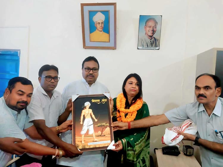 करमचंद भगत महाविद्यालय बेड़ो के नये प्राचार्य डाॅ डोलो मई हासंदा ने बुधवार को पदभार ग्रहण किया. पूर्व प्रचार्य डाॅ बिनोद सिंह ने पदभार देकर इन्हें कुर्सी पर बैठा कर शुभकामनाएं दी. उन्हें गुलदस्ता व अंगवस्त्र देकर स्वागत किया. नये प्राचार्य ने कहा कि कॉलेज में ग्रामीण क्षेत्र के गरीब बच्चे पढ़ने आते है, जिन्हें शैक्षणिक माहौल दिया जायेगा. सांसद प्रतिनिधि जुगेश उरांव, धनंजय कुमार रॉय, जेएमएम के जिला सचिव मुन्ना बड़ाइक ने डॉ हांसदा को भगवान बिरसा मुंडा का प्रतीक चित्र देकर स्वागत किया. मौके पर शिक्षाविद् डॉ दिवाकर मिंज, पूर्व प्राचार्य डॉ प्रदीप अधिकारी, डॉ मथुरा राम उस्ताद, डॉ विंध्याचल राम, डाॅ गोपा मिंज, प्रो राजा सिंह, अरविंद राणा बिलुंग, डॉ रवि भूषण साहू, विकास सिन्हा, ब्रम्हानंद साहू, किशोर साहू, डॉ आशा रानी लकड़ा, अनिल अशोक मिंज व दिलीप उरांव आदि मौजूद थे.बेड़ो, पदभार ग्रहण करते डॉ डोलो मई हांसदा.B