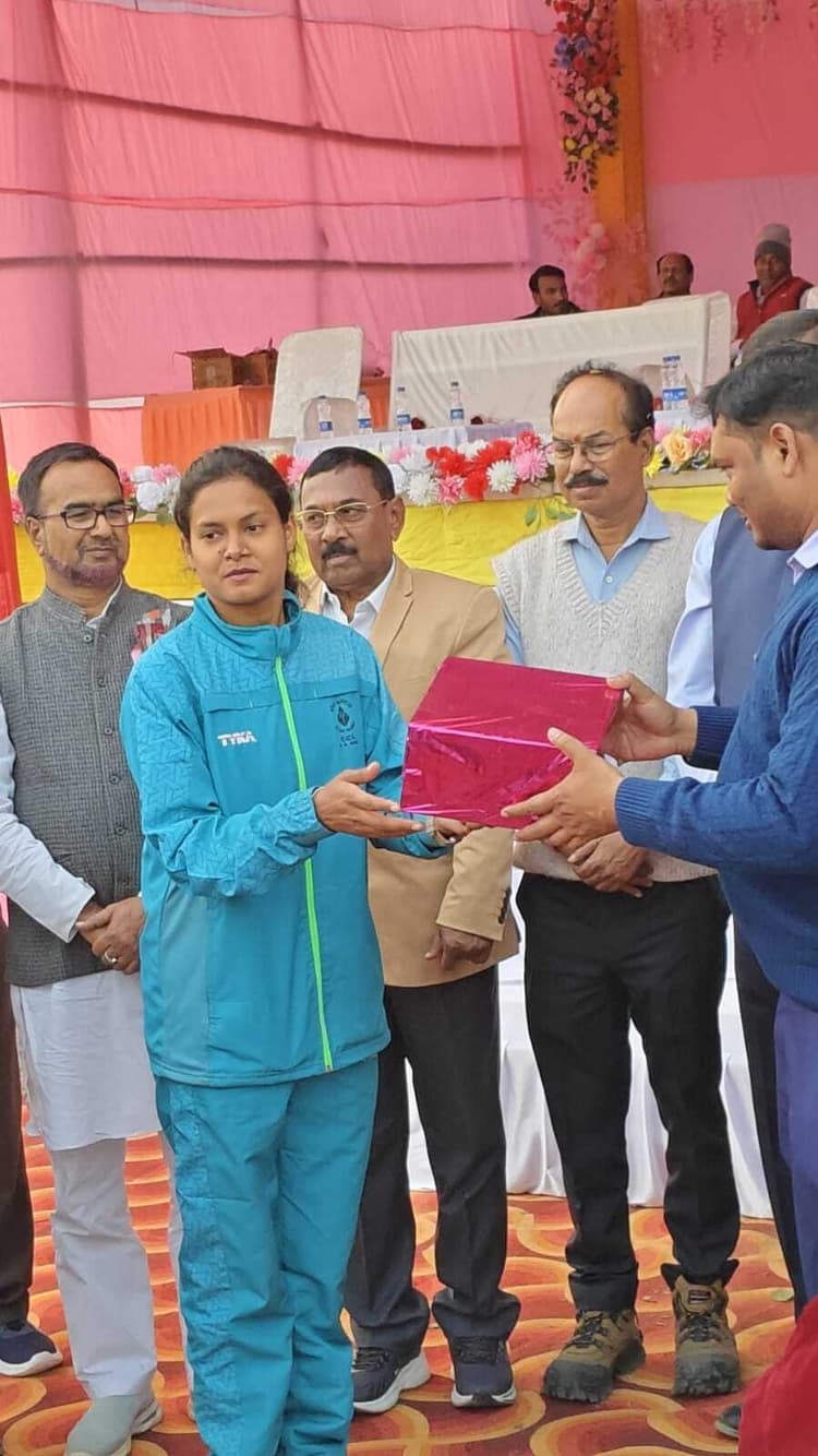 रजरप्पा एरिया की मेजबानी में शुक्रवार को सीसीएल अंतरक्षेत्रीय एथलेटिक्स खेलकूद प्रतियोगिता में एनके एरिया की टीम ओवरऑल चैंपियन बनी. अशोक कुमार सिंह की कप्तानी में 27 सदस्यीय टीम में शामिल महिला खिलाड़ी ललीता कुमारी ने महिला वर्ग में व्यक्तिगत चैंपियनशिप के साथ-साथ सामूहिक पुरुष टीम में भी एनके की टीम पूरे सीसीएल में अव्वल रही. बताते चलें कि इस टीम को एक दिन भी अभ्यास के लिए छुट्टी नहीं मिली थी और सभी ड्यूटी करने के साथ-साथ एरिया की प्रतिष्ठा को बढ़ाया है. विजेता खिलाड़ियों को सीसीएल के निदेशक (मानव संसाधन) हर्षनाथ मिश्रा ने ट्रॉफी प्रदान कर सम्मानित किया. टीम मैनेजर रामजतन गंझू, कोच नरेश करमाली व कैप्टन अशोक सिंह के नेतृत्व में खिलाड़ियों ने अपनी प्रतिभा के दम पर शानदार प्रदर्शन कर कोल इंडिया एथलेटिक्स खेलकूद प्रतियोगिता के लिए मजबूत दावेदारी पेश की है. टीम में गोपाल उरांव व महिला वर्ग में ललिता कुमारी को सर्वश्रेष्ठ खिलाड़ी का पुरस्कार प्रदान किया गया. एनके एरिया टीम में अशोक सिंह, गोपाल उरांव, सुरेश टाना भगत, महेश तुरी, कालेश्वर गंझू, गुदलवा महतो, सुरेंद्र टाना भगत, दीपक टोप्पो, राजेश भगत, सुशील किस्पोट्टा, संतोष कुमार सहित महिला वर्ग से टेरेसा तिग्गा, ललिता कुमारी, आकांक्षा कुमारी, सुनीता, सरिता, स्वाति, हीरामनी, पुष्पा आदि का प्रदर्शन शानदार रहा. एनके एरिया के सभी अधिकारी और श्रमिक नेताओं ने खिलाड़ियों को बधाई दी है.