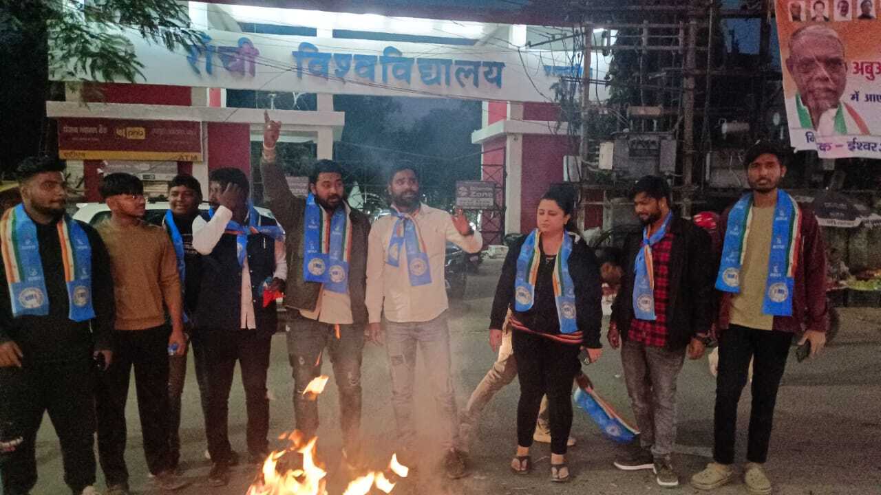 रांची. एनएसयूआइ ने नीड बेस्ड असिस्टेंट प्रोफेसर की नियुक्ति में गड़बड़ी का आरोप लगाते हुए शनिवार को रांची विवि के कुलपति डॉ अजीत कुमार सिन्हा का विवि मुख्यालय के समक्ष पुतला दहन किया. प्रदेश अध्यक्ष विनय उरांव ने कहा कि रांची विवि द्वारा नीड बेस्ड असिस्टेंट प्रोफेसर की नियुक्ति प्रक्रिया संचालित है और अभ्यर्थियों का शैक्षणिक दस्तावेज सत्यापन किया जा रहा है. इस नियुक्ति में यूजीसी की अहर्ता संबंधी नियमावली का अक्षरश: अनुपालन हो रहा है. जबकि विवि को राज्य सरकार व जेपीएससी द्वारा जारी नियमावली के आधार पर नियुक्ति की जानी थी. विवि जेपीएससी द्वारा जारी नियमावली का पालन करे. ताकि स्थानीय अभ्यर्थियों को उचित अवसर मिल सके. इस दौरान राष्ट्रीय संयोजक आरुषि वंदना, प्रदेश उपाध्यक्ष अमन अहमद, प्रदेश महासचिव अभिजीत सिंह, तनु राजपूत, अब्दुल, पवन, गुलशन, प्रिंस राज, विश्वजीत, प्रियांशु, अकमल, शाहनवाज, आयुष, आदित्य आदि मौजूद थे.